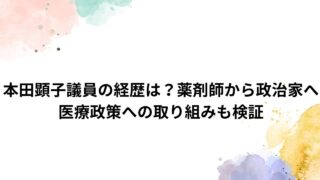 エンタメ 本田顕子議員の経歴は?薬剤師から政治家へ、医療政策への取り組みも検証