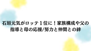 エンタメ 石垣元気がロッテ1位に!家族構成や父の指導と母の応援/健大高崎での努力と仲間との絆