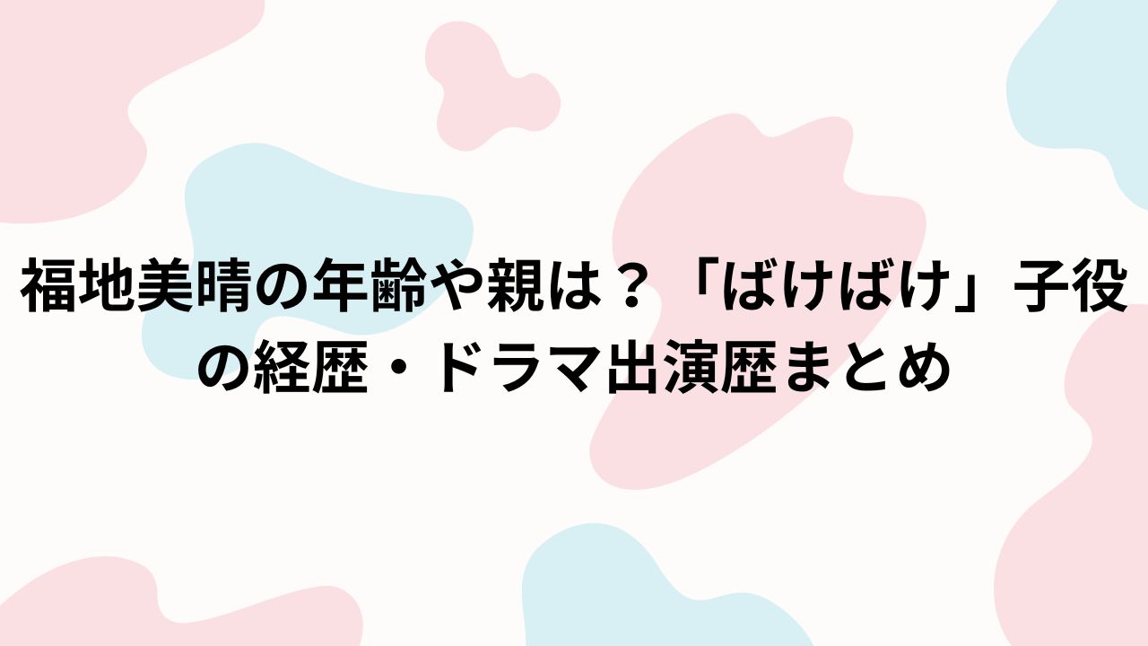 福地美晴の年齢や親は?『ばけばけ』子役の経歴・ドラマ出演歴まとめ