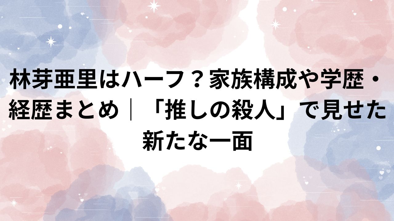 この記事では、林芽亜里さんがハーフと噂される理由や家族構成・学歴・経歴、そして最新出演作『推しの殺人』での役柄までを詳しくまとめました。