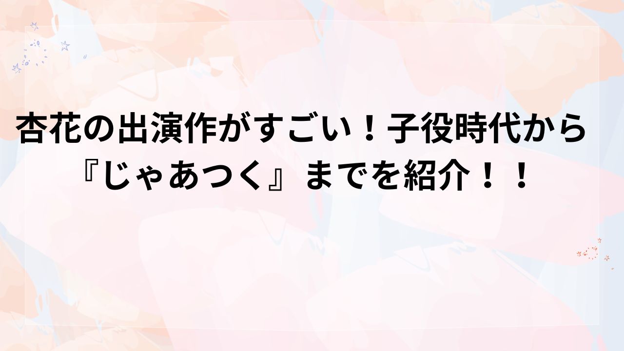 今回は、杏花さんのプロフィール、子役時代からの出演作、そして最新ドラマでの評価までをまとめてご紹介します。