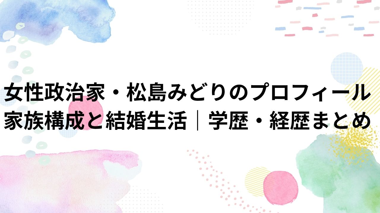 この記事では、松島みどりさんの学歴や経歴、家族構成、そして高市総裁との関係などをわかりやすく紹介し、今後の政治での役割にも注目してまとめています。