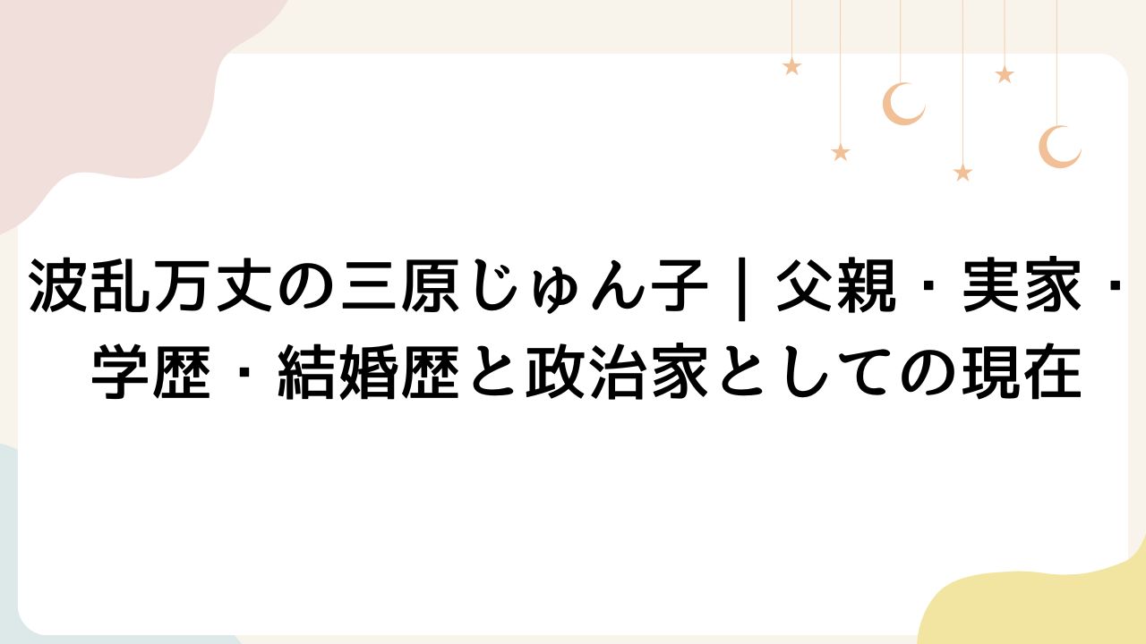この記事では、三原じゅん子さんのプロフィール、家族構成、学歴・経歴、結婚歴、そして最新の政治・社会活動までを網羅し、その半生と現在の活動をわかりやすくご紹介します。