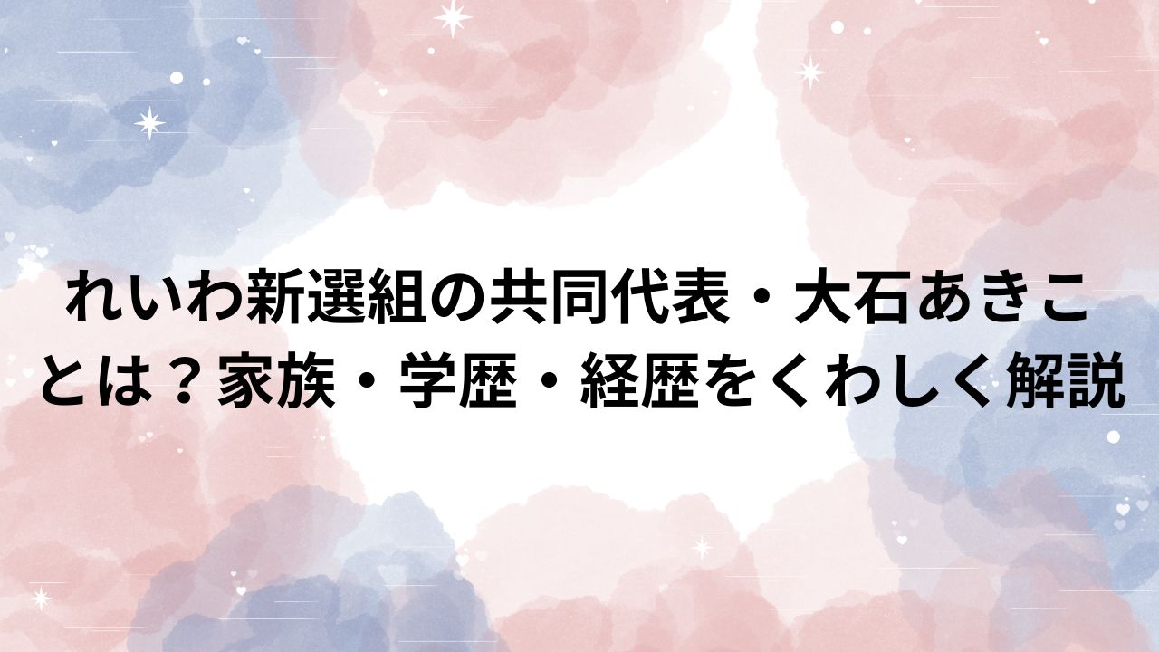 この記事では、大石あきこさんのプロフィールや家族構成、学歴・経歴を整理しながら、