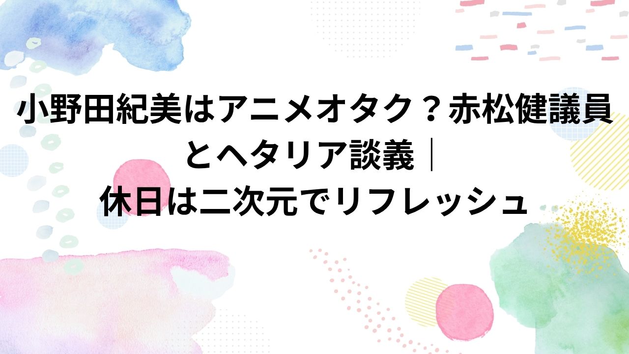この記事では、小野田紀美さんの漫画オタクぶりや趣味・休日の過ごし方、さらに漫画家議員の赤松健さんとの意外な交流まで、普段はなかなか見られない“素顔”をまとめてご紹介します。