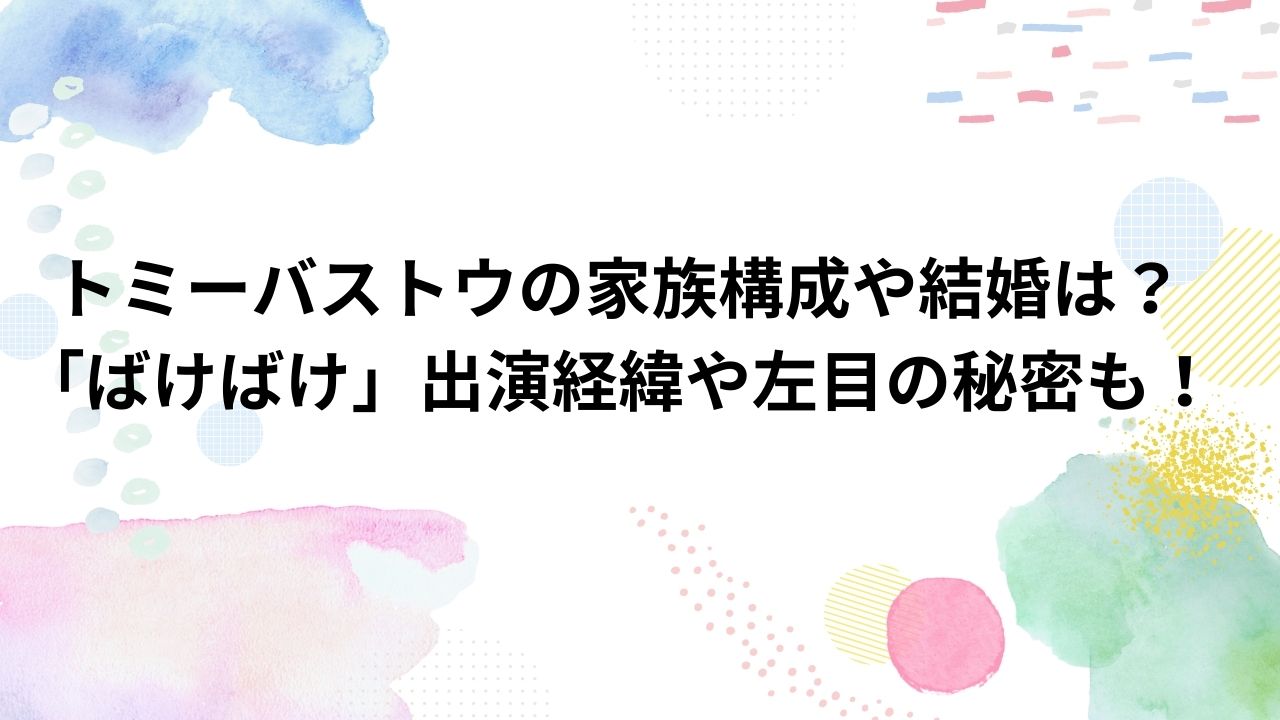 この記事では、トミー・バストウさんの家族構成、結婚の有無、「ばけばけ」出演の経緯、そして話題の左目の秘密まで、徹底的に解説します!